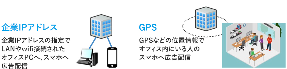 ターゲットに応じたセグメントを抽出企業IPアドレスとスマホ位置情報を利用し