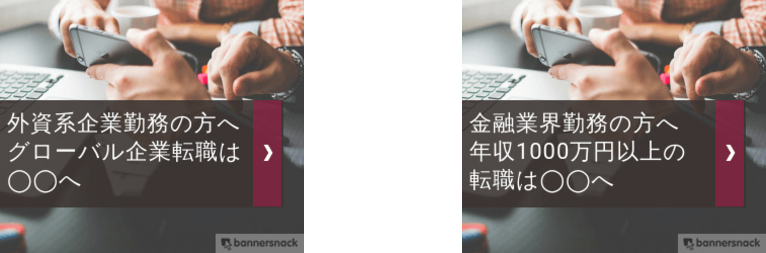 | 英会話教室・MBA大学院 | 外資系企業、上場企業の勤務者をターゲティング 体験レッスンが受けられる最寄りの教室などを訴求 |